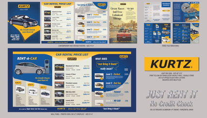 Car rental agency's signage, posters & pamphlets